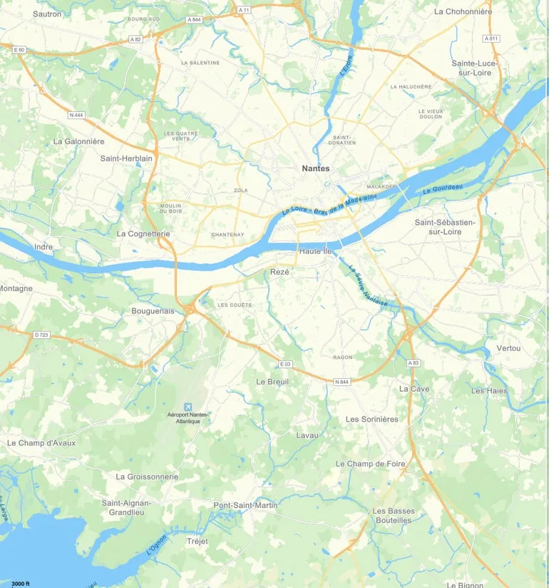 Rezé, Saint-Sébastien-sur-Loire, Basse-Goulaine, Haute-Goulaine, Bouguenais, Les Sorinières, Vertou, Le Bignon, Saint-Philbert-de-Grand-Lieu, Saint-Aignan-Grandlieu, Bouaye , saint Herblain, Orvault , Le Bignon, Aigrefeuille sur Maine,